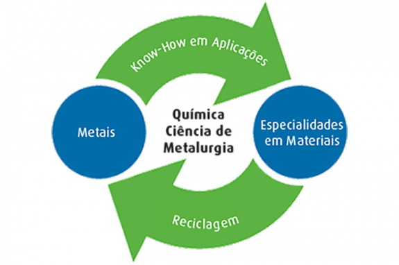 A Umicore produz localmente catalisadores automotivos, compostos de metais nobres, produtos e processos para galvanoplastia e atua na recuperação, reciclagem e refino de metais.